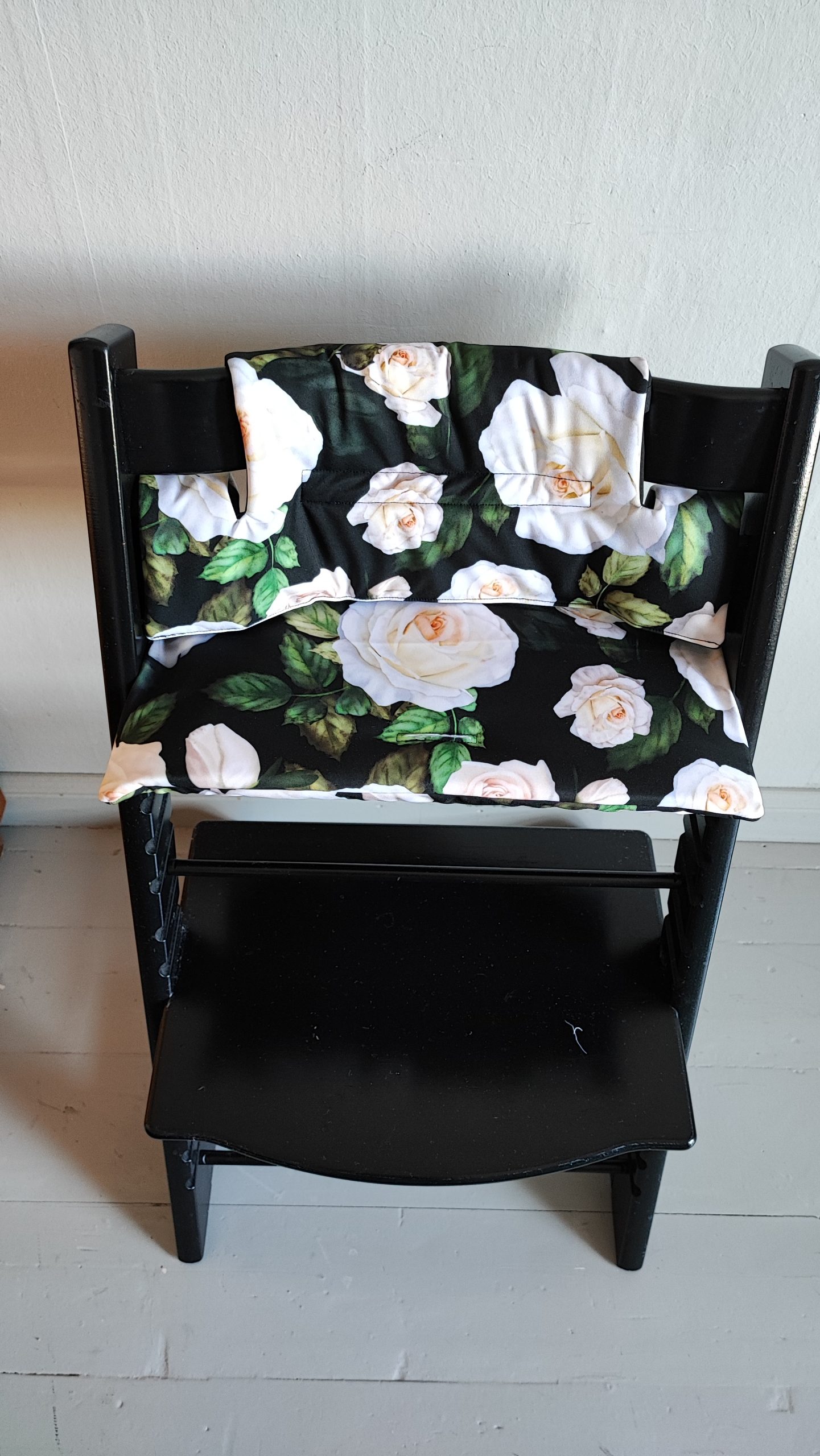 Pehmuste sopii käytettäväksi Tripp Trapp tuoliin. Selkänojan pehmusteessa on huppu joka vedetään baby setin selkänojan yli. Selkänojan sivuilla olevat pehmukkeet kiinnittyy tarranauhoilla, sopii käytettäväksi ilman baby settiä. Pehmuste on ommeltu vettä ja likaa hylkivästä kankaasta, joka on helppo pyyhkiä puhtaaksi. Pehmusteiden taustapuoli on yksiväristä, vettä ja likaa hylkivää kangasta.